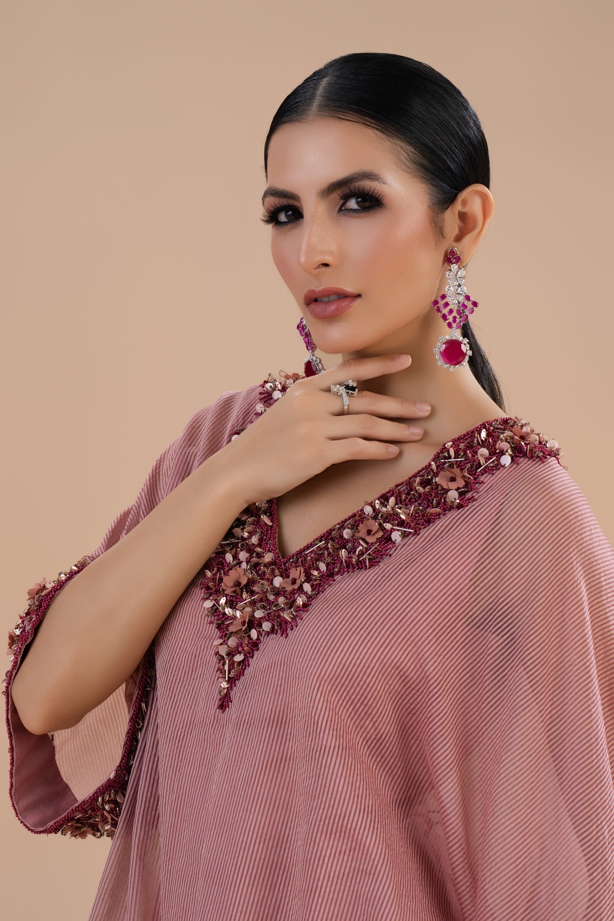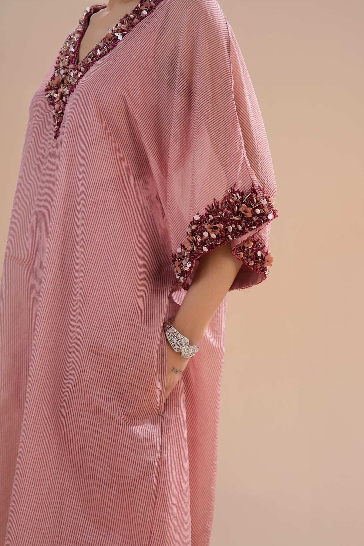 Slight color variations may occur due to photography and screen settings. As each piece is handcrafted, no two garments are exactly alike.
