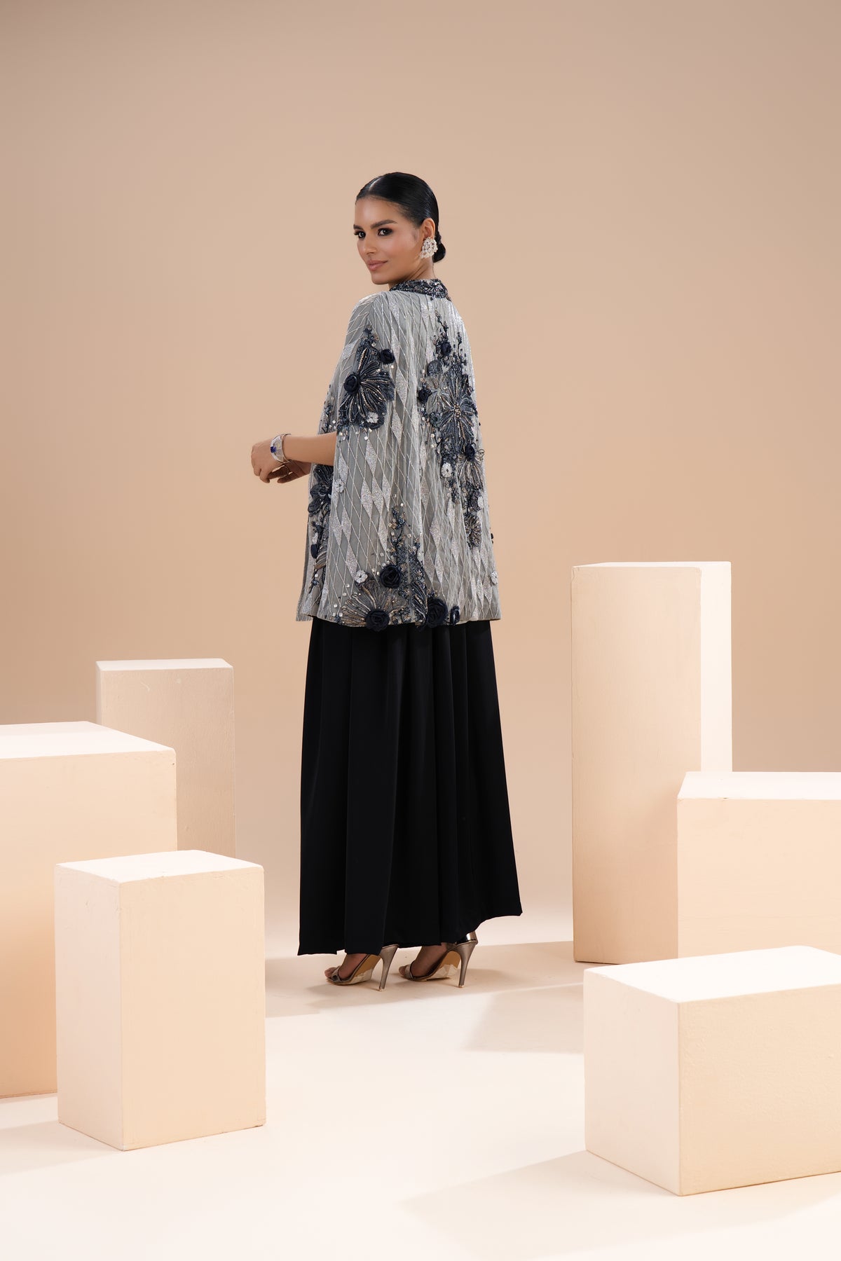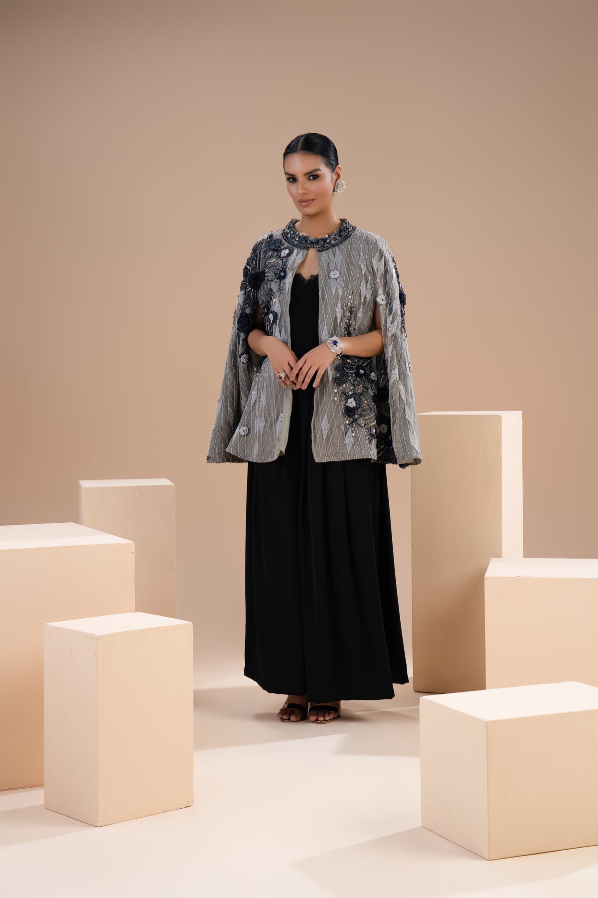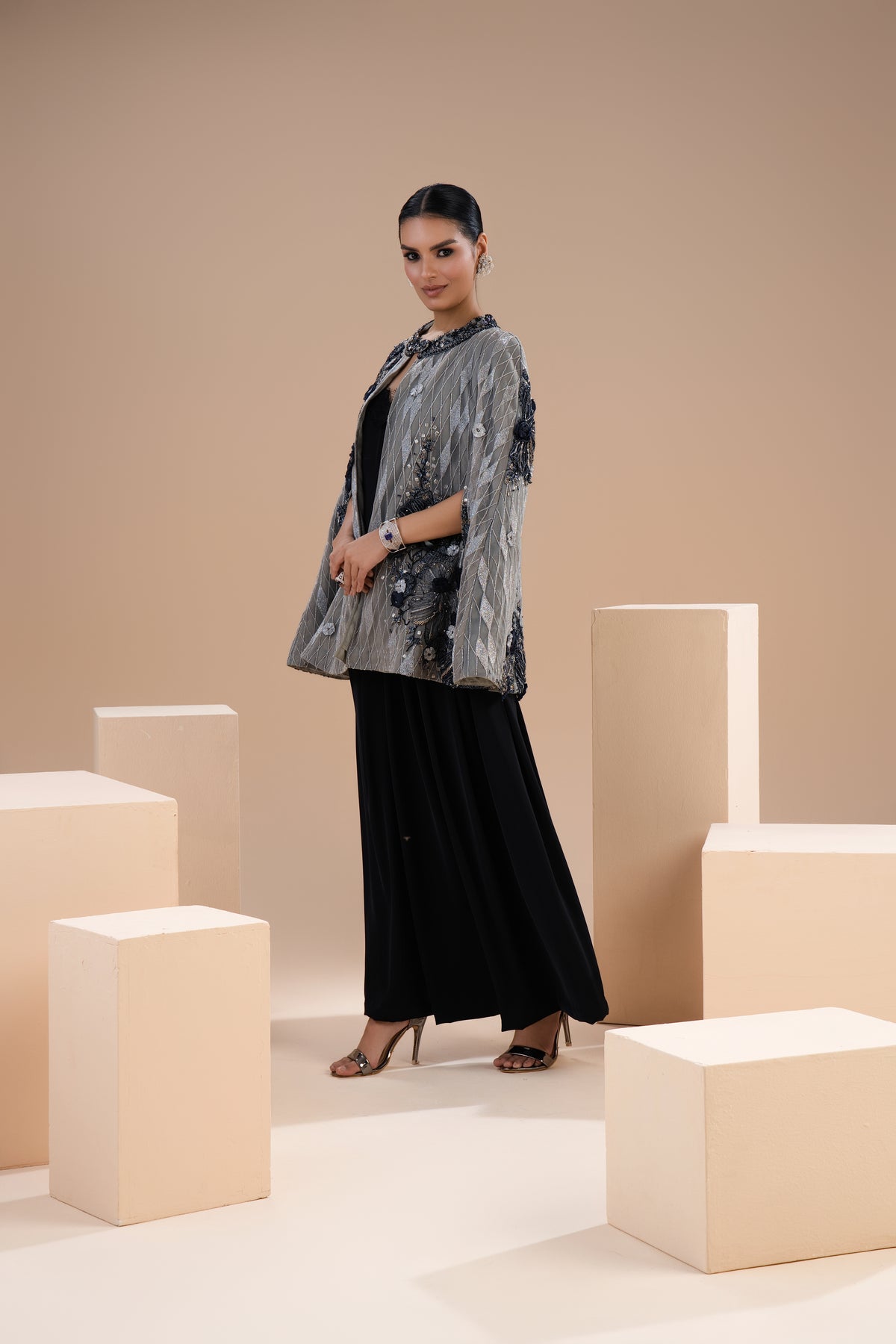 The Outfit Strikes A Balance Between Structural Elegance And Artistic Embellishments.It Is A Perfect Choice For An Indiviual Seeking A Refined And Unique Look For Formal Evening Dinners,Art Gallary Opening,Or Sophisticated Specials Events.