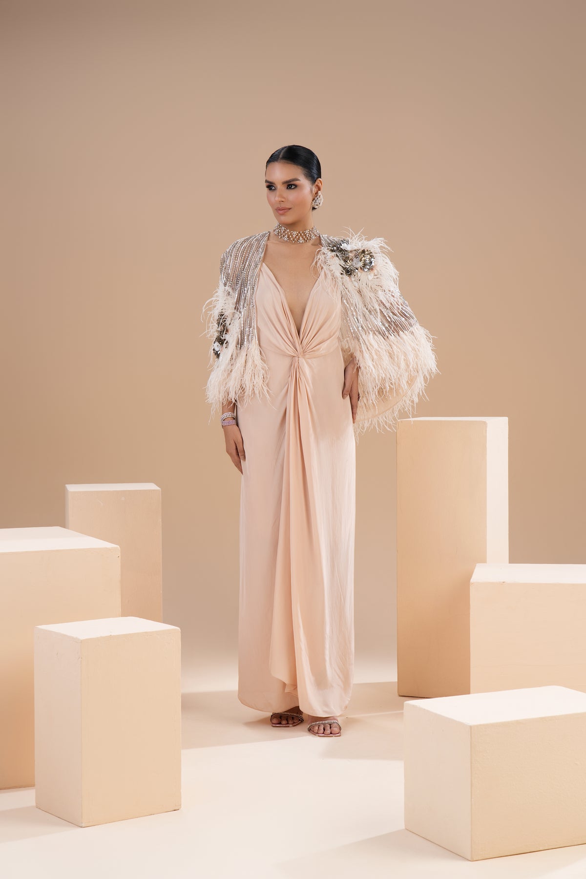 Intricate Embroidery And Crystal Detailing Subtly Enhance Its Luxurious Feel, Creating A Radiant Aura With Every Movement.