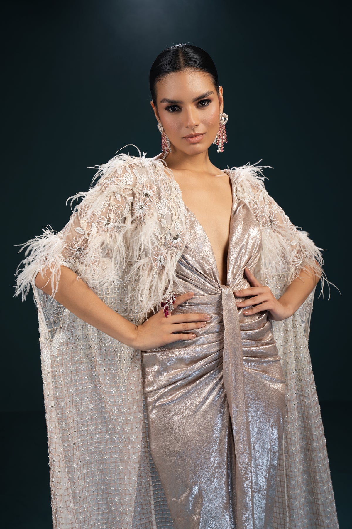 Full Floor Length Cape Perfect For High-End Events,Red Carpet,Major Galas,Or Evening Wedding.